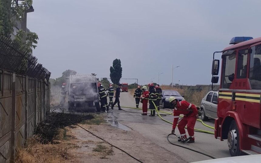 Un microbuz a ars ca o torță lângă Șantierul Naval Brăila