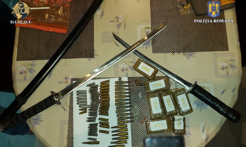 Procurorii DIICOT și polițiștii CCO i-au luat urma traficantului gălățean, înaintea colegilor din orașul vecin și au găsit în casa lui arme albe, cartușe și droguri