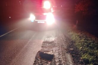 Pericol de moarte la intrare în Filipești. Groapă nesemnalizată în mijlocul șoselei, pe DN 2B. Un șofer a chemat Poliția