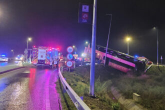 Autocar cu 24 de ucraineni răsturnat la ieșirea de pe Podul Brăilei