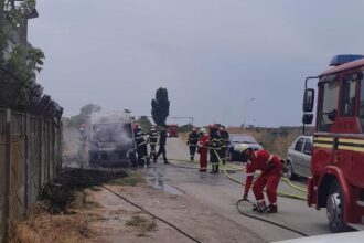 Un microbuz a ars ca o torță lângă Șantierul Naval Brăila