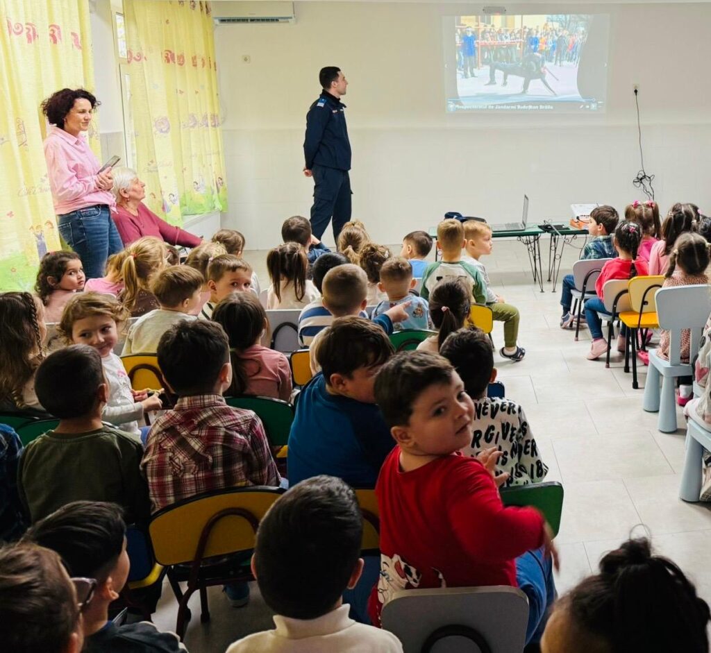 La invitația cadrelor didactice de la Grădinița cu Program Prelungit nr. 48 „Luceafărul” din municipiu, jandarmii brăileni au desfășurat o activitate interactivă, în ziua de 7 noiembrie a.c., spre încântarea prichindeilor care au avut ocazia să afle multe lucruri despre activitatea instituției. Copiii au analizat cu maximă atenție ținutele de serviciu ale jandarmilor, au vizionat filmulețe și imagini, cele mai interesante pentru ei fiind cele dedicate misiunilor la care au participat câinii și caii de serviciu, din dotarea Inspectoratului.