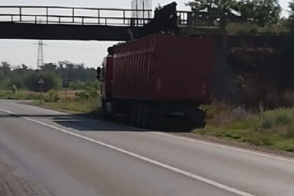 Un autocamion care nu a respectat limita de înălțime a izbit podul…