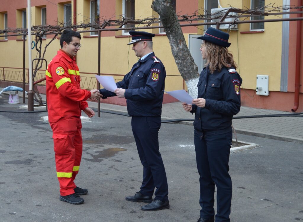 Totodată, conducerea inspectoratului a acordat diplome de apreciere pentru trei voluntari din programul „Salvatori din pasiune”, activi în exercițiile și acțiunile de prevenție recente.
